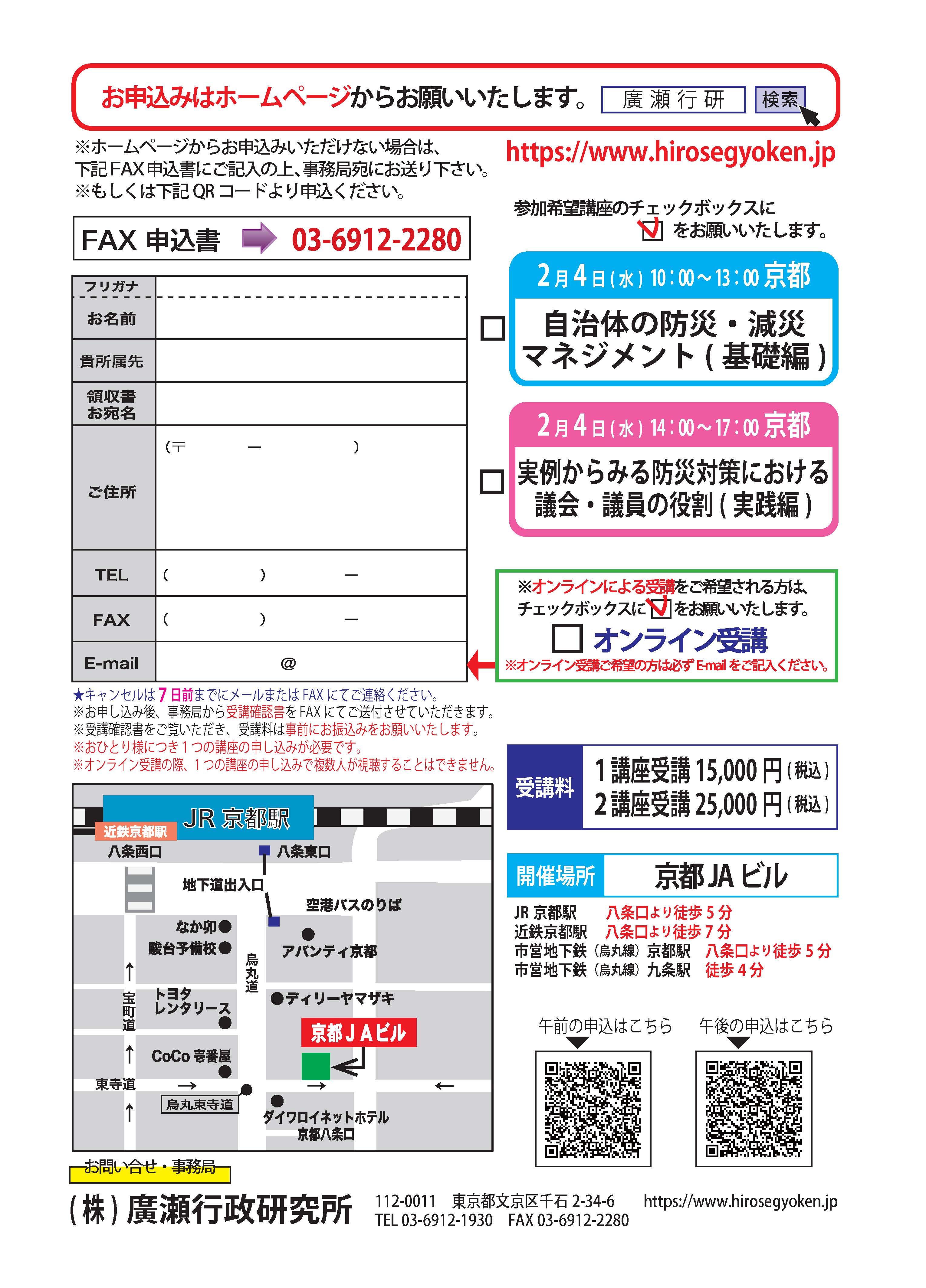 • 追って詳細を記した受講確認書をメールでお送りいたしますので、受講料は事前に指定の口座にお振込みをお願いいたします。