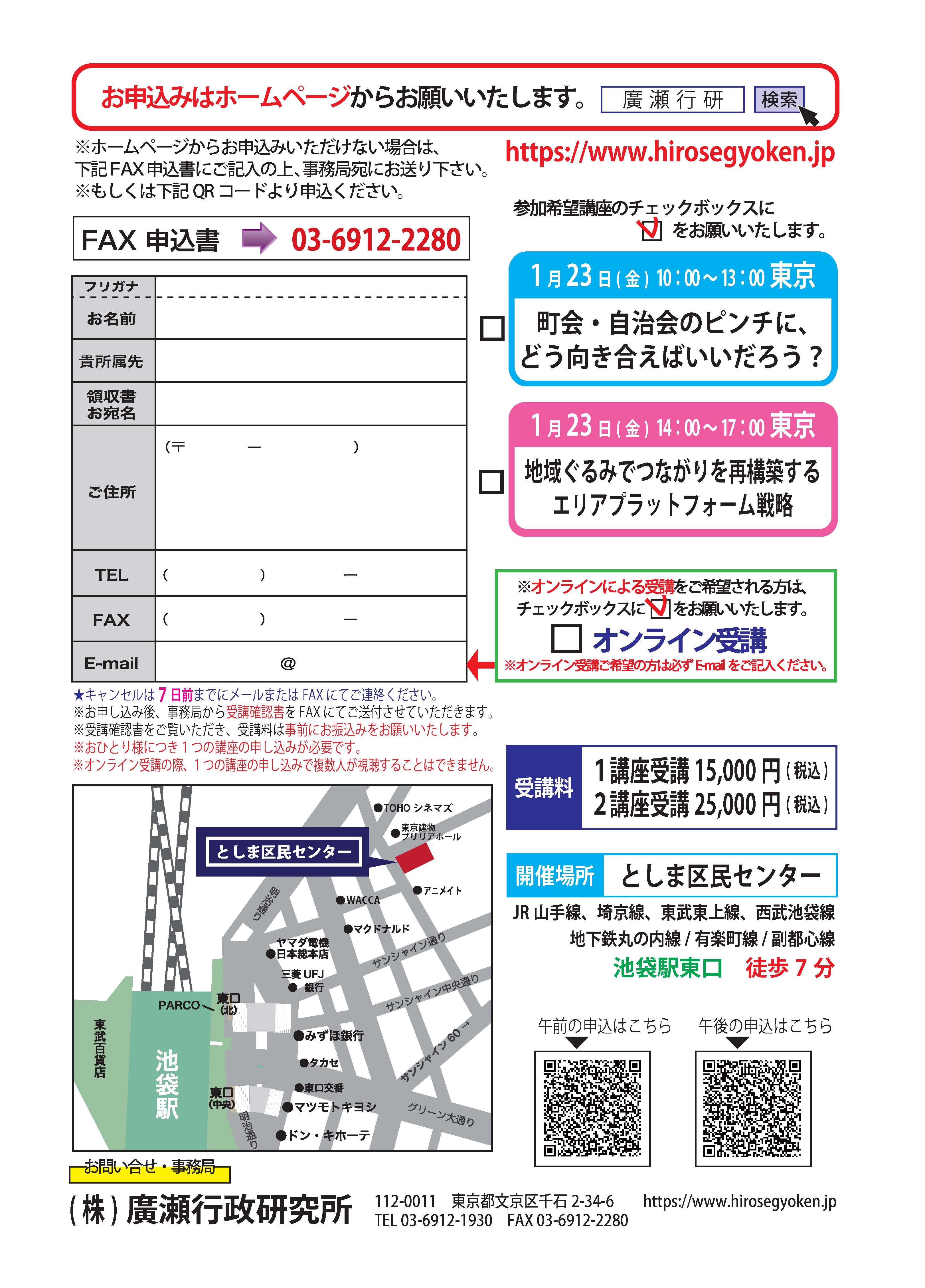 | 会場 | としま区民センター 404号室 東京都豊島区東池袋1丁目20-10 [Google Mapで見る] |